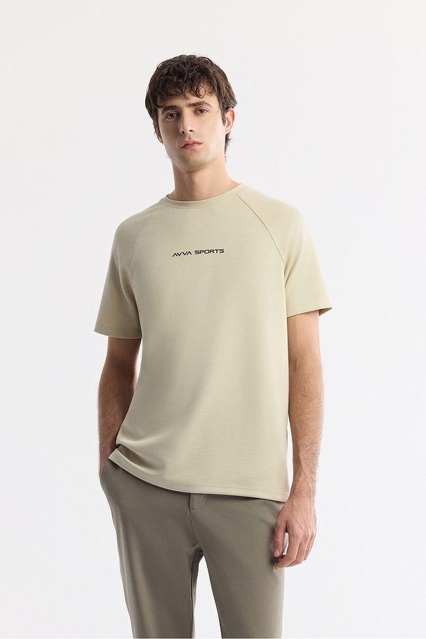 Avva Erkek Bej Bisiklet Yaka Baskılı Oversize Fit T-Shirt A41Y1168