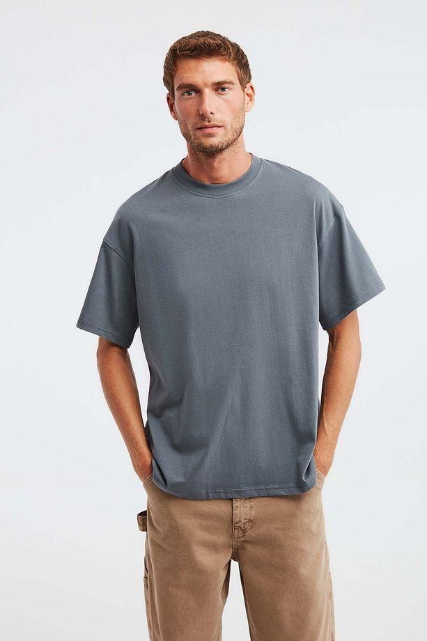 GRIMELANGE Jett Erkek Oversize Fit %100 Organik Pamuk Kalın Dokulu Bisiklet Yakalı Açık Gri T-shirt