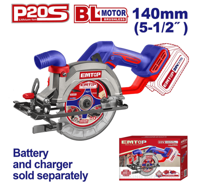 Аккумуляторная дисковая пила EMTOP — это компактный и мощный инструмент с напряжением 20 В и высокой скоростью холостого хода 6300 об/мин. Она идеально подходит для резки древесины и листовых материалов, обеспечивая мобильность благодаря беспроводной конструкции. Пила использует лезвие диаметром 140 мм (5-1/2 дюйма) с посадочным размером 20 мм. Глубина реза легко регулируется: до 50 мм под углом 90° и до 33 мм под углом 45°. Также предусмотрена регулировка угла реза. В комплект входит одно лезвие. Обратите внимание: аккумулятор и зарядное устройство приобретаются отдельно. Упаковано в цветную коробку. Технические характеристики: Тип: Дисковая аккумуляторная пила Напряжение: 20 В Скорость холостого хода: 6300 об/мин Диаметр лезвия: 140 мм (5-1/2 дюйма) Размер шпинделя: 20 мм Глубина реза под 90°: 50 мм Глубина реза под 45°: 33 мм Особенности: Регулируемая глубина реза, Регулируемый угол реза Комплектация: Дисковая пила EMTOP Лезвие (диск) 140 мм: 1 шт. Аккумулятор и зарядное устройство: Продаются отдельно Упаковка: Цветная коробка