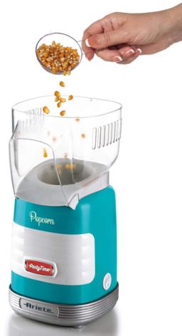 Аппарат для попкорна Ariete 00C295601ARAS, как и модель 00C295600ARAS, использует технологию приготовления горячим воздухом, что позволяет получить готовый попкорн без добавления масла или жира, делая его более легким и полезным.