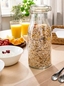 Стеклянная банка с крышкой объемом 1 литр. Изготовлена из прозрачного стекла. Подходит для хранения продуктов с защитой от воздуха. Многоразовое использование, экологически безопасна и легко очищается.