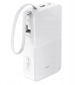 Портативный аккумулятор 10000 мАч BASEUS EnerFill FC51 — это мощное и компактное зарядное устройство, которое обеспечит энергией ваши гаджеты в любом месте. Его ключевая особенность — встроенный плетеный кабель USB-C, который отличается повышенной прочностью и не путается, что избавляет от необходимости носить с собой дополнительные провода. Зарядное устройство поддерживает быструю зарядку мощностью 22.5W через порт Power Delivery (PD), что позволяет одновременно заряжать до трех устройств, например, смартфон, планшет и наушники. Удобный цифровой LED-дисплей точно отображает текущий остаток заряда в процентах, поэтому вы всегда будете знать, когда потребуется подзарядка самого пауэрбанка.