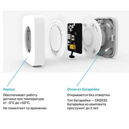 Кнопка управления умным домом Aqara. По нажатию кнопки выдаёт соответствующие команды Центру умного дома или камере по каналу Zigbee (2.4 ГГц). Работает от съёмной батарейки (таблетка C2032) Кнопка может определить однократное, двукратное и длительное нажатие. На каждое действие можно назначить отдельный сценарий. Например, включать и выключать свет во всём доме одной кнопкой Ещё мини-кнопка послужит умным дверным звонком. При нажатии кнопка отправит сигнал на Центр умного дома (хаб) Aqara, а он проиграет выбранную мелодию звонка или отправит сообщение на смартфон Некоторые характеристики: Габариты: 12 х 45 х 45 мм Протокол связи: Zigbee Батарея: CR2032 Рабочая температура: -10°С…+50°С Допустимая влажность: 5 — 95% относительной влажности Комплект поставки: беспроводная кнопка, руководство пользователя, стикер для монтажа