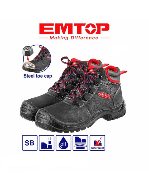 Ботинки защитные EMTOP ESBS41SB45 (размер 45) Это профессиональная рабочая обувь, предназначенная для обеспечения максимальной безопасности на производстве, складах и строительных площадках. Модель оснащена стальным подноском и обладает отличными противоскользящими свойствами. Характеристики: Размер: 45; Категория защиты: SB (со стальным подноском); Материал верха: Натуральная кожа; Подошва: Двухслойный полиуретан (PU), маслобензостойкая; Особенности: Стальной носок, ударопоглощающая пятка.