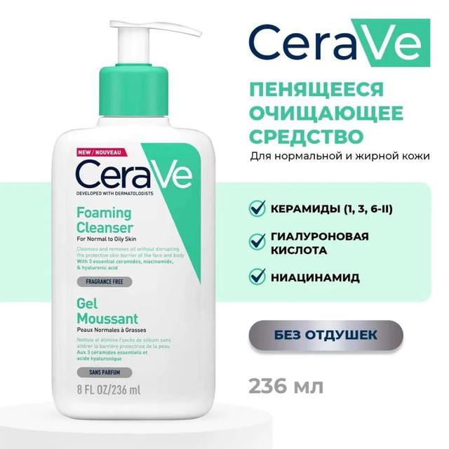 Это один из продуктов линейки ухода за кожей от CeraVe, американского бренда, который известен своими продуктами, разработанными с учетом потребностей чувствительной кожи. Это мягкое и эффективное пенящееся очищающее средство, разработанное для очищения и увлажнения кожи. Оно обладает формулой, которая не только удаляет загрязнения и макияж, но и помогает восстановить естественный барьер кожи благодаря включенным в состав ключевым ингредиентам.