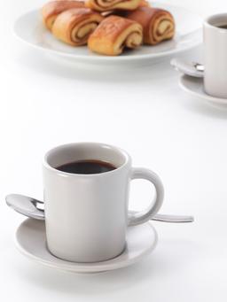 Эспрессо-чашка и блюдце объёмом 9 кл бежевого цвета изготовлены из прочной и гладкой керамики, подходят для повседневного использования. Стильный дизайн создаёт атмосферу кафе у вас дома.