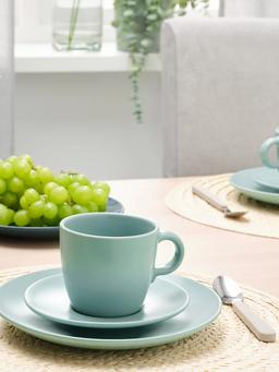 Чашка с блюдцем IKEA FÄRGKLAR матовая светло-бирюзовая, 250мл