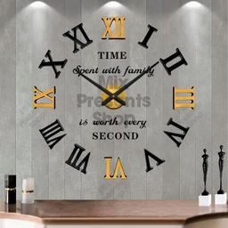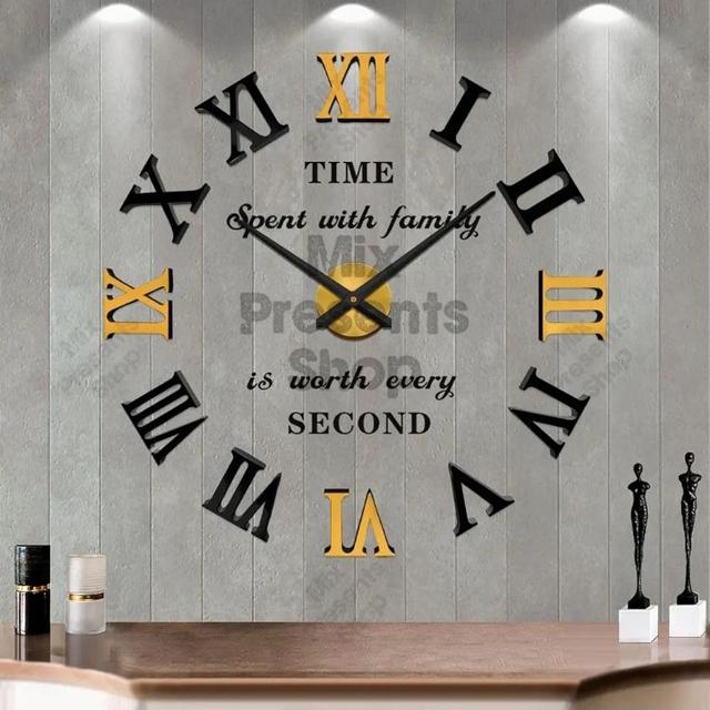 Часы настенные 3D "Римские цифры" двухцветные (Gold+Black) Размер: от 70 до 130 см диаметр (выбирается по шаблону) Часы настенные 3D Большой размер. Высота буквы 10,5 см. Большая стрелка 39 см. Маленькая стрелка 29 см. Механизм бесшумный. Услуга качественной установки оплачивается отдельно (от 120 Ман)