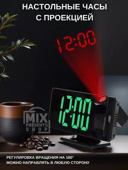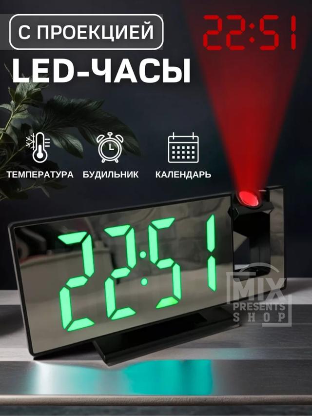 Часы настольные с проекцией LED (дата, температура, будильник) зеркальные