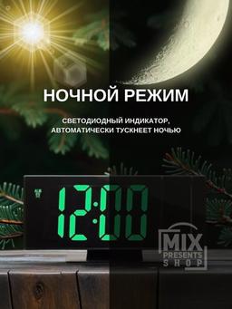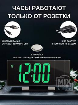 Часы настольные с проекцией LED (дата, температура, будильник) зеркальные DS-3815LP Удобство и современный дизайн в одном устройстве! Наши электронные часы, которые идеально впишутся в интерьер вашего дома или офиса, добавляя элегантности и удобства в повседневную жизнь. Особенности: Точный и четкий дисплей: Высококонтрастный LED-экран обеспечивает легко читаемое отображение времени, даже при слабом освещении. Многофункциональный будильник: Возможность установки будильника. Регулируемая яркость. Работают от кабеля USB (есть в комплекте)