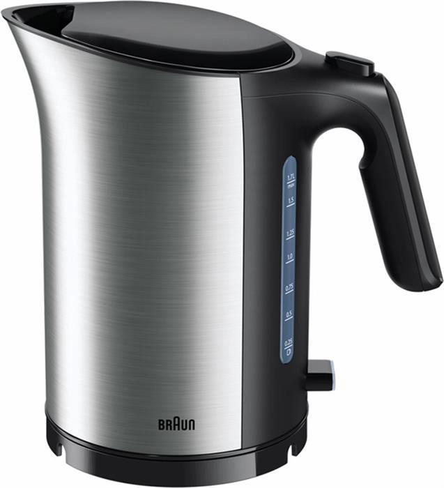 Электрический чайник Braun ID Breakfast Collection WK 5100 BK — это сочетание стильного дизайна и высокой функциональности, созданное для быстрого и безопасного приготовления горячих напитков. Благодаря мощности 2200 Вт и продуманной конструкции, он станет незаменимым помощником на любой кухне. Ключевые преимущества: Система быстрого закипания: Чайник способен вскипятить 200 мл воды (примерно 1 чашку) всего за 45 секунд, что идеально подходит для быстрого утреннего кофе или чая. Четырехуровневая система безопасности: Обеспечивает полную защиту во время использования. Чайник автоматически отключается при закипании воды, при отсутствии воды, при открытой крышке или снятии с базы. Премиальные материалы: Корпус выполнен из комбинации прочного металла и высококачественного пластика, не содержащего бисфенол, что гарантирует долговечность и безопасность для здоровья. Удобство использования: Двусторонний индикатор уровня воды позволяет легко контролировать наполнение как правшам, так и левшам. Широкий носик и откидная крышка облегчают процесс наполнения водой. Легкость в уходе: Скрытый нагревательный элемент из нержавеющей стали упрощает очистку от накипи, а съемный моющийся фильтр предотвращает попадание частиц накипи в чашку. Эргономичный дизайн: Прорезиненная открытая ручка обеспечивает комфортный и надежный хват, а функция вращения чайника на базе на 360° добавляет удобства в повседневной эксплуатации.