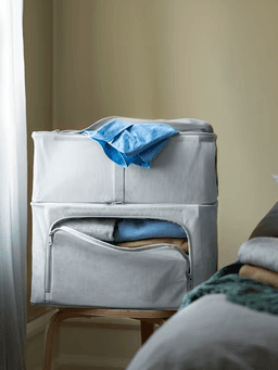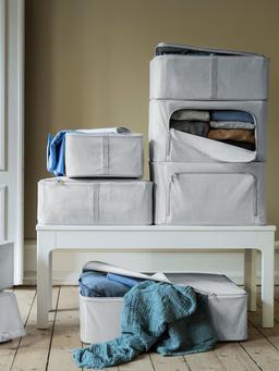 Чемодан для хранения IKEA HEMMAFIXARE ткань в полоску/белый/серый, 34x51x28 см