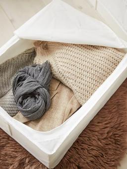 Для хранения сезонной одежды, постельного белья, одеял или объемных вещей. Можно размещать под кроватью или в шкафу. Материал: Полиэстер Размер:43x53x19 см