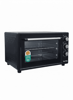 Основные технические параметры Модель: MO5010BK Мощность: 1500 Вт Объем: 50 литров (увеличенный объем) Напряжение: 220–240 В ~ 50/60 Гц Габариты упаковки: 580 x 440 x 340 мм Функциональные особенности Таймер: от 0 до 90 минут со звуковым сигналом об окончании работы. Термостат: Регулируемый (позволяет выставлять нужную температуру). Выбор мощности: 3 ступени переключения режимов. Конвекция: Наличие турбовентилятора (Turbo Fan) для равномерного распределения горячего воздуха. Освещение: Внутренняя подсветка камеры. Конструкция и комплектация Материалы корпуса: Электростатическая покраска внешней части. Дверца: Термостойкое и ударопрочное переднее стекло. Комплектация: Эмалированный лоток (противень) и сетчатая решетка (гриль).