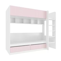 Двухъярусная кровать Алиса Двухъярусная кровать Алиса — это отличное решение для эффективного использования пространства в комнате, где живут двое детей. Модель спроектирована с учетом максимального комфорта и функциональности: для каждого ребенка предусмотрено уютное спальное место, индивидуальный выдвижной ящик для белья и открытые полки для книг или любимых игрушек. Широкие и устойчивые ступени обеспечивают безопасность и удобство при подъеме на второй ярус. Универсальный дизайн и приятная цветовая гамма позволяют кровати гармонично дополнить любой современный интерьер. Характеристики: Материал: Высококачественная ЛДСП. Функциональность: 2 спальных места, индивидуальные ящики, встроенные полки. Безопасность: Широкие ступени лестницы и защитные бортики на верхнем ярусе. Важно: Матрасы в комплект не входят. Размеры: Габариты кровати (ШхВхГ): 195х180х108 см. Размеры спального места (ШхГ): 90х190 см. Доставка и установка: Бесплатно.