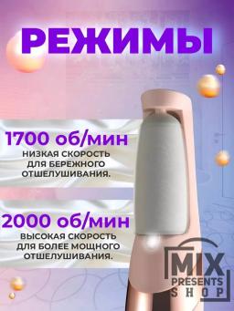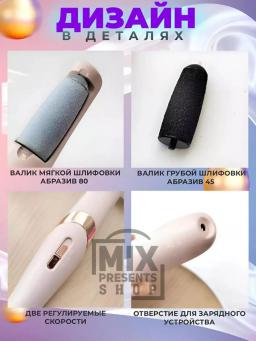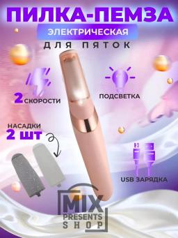 Пемза для ног электрическая аппарат для пяток, разработанный для эффективного удаления натоптышей на ногах. Шлифовальная машинка для кожи является must have в домашней косметике. Оснащенная специально разработанным вращающимся барабаном, терка для пяток эффективно удаляет ороговевшие клетки кожи, придавая поверхности стоп гладкость и мягкость. Благодаря регулируемой скорости вращения и удобному дизайну, вы можете настроить интенсивность обработки в соответствии с вашими потребностями и предпочтениями. Благодаря своей портативности, вы можете брать электропилочку с собой в путешествия или использовать дома, в любое удобное время. Кроме того, электропилка оснащена встроенным аккумулятором, что позволяет пемзе работать без подключения к сети электропитания. Вы сможете зарядить пемзу и использовать ее в течение длительного времени, не беспокоясь о замене батареек. В наборе есть валик для мягкой шлифовки. Аксессуар для педикюра, идеально подходит для использования дома, позволяя вам получить профессиональный результат без необходимости посещать салон красоты. Заряжается от кабеля USB.