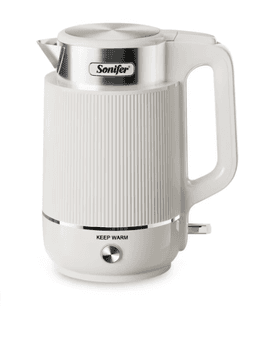 Электрический чайник Sonifer SF-2151A — это надежный бытовой прибор, созданный для комфортного и быстрого приготовления горячих напитков. Модель отличается современным дизайном и эргономичной конструкцией. Корпус устройства выполнен из материалов, устойчивых к коррозии и температурным перепадам, что гарантирует длительный срок службы. Высокая мощность и многоуровневая система защиты делают этот чайник отличным выбором для повседневного использования. Некоторые особенности устройства: Корпус из качественных материалов обеспечивает долговечность и сохраняет эстетичный вид прибора. Скрытый нагревательный элемент мощностью 1800 Вт гарантирует быстрое закипание и легкость в очистке от накипи. Система автоматического отключения срабатывает сразу после закипания воды. Защита от включения без воды предотвращает повреждение устройства и обеспечивает безопасность. Эргономичная ручка с удобным расположением кнопок управления позволяет легко пользоваться чайником одной рукой. Световой индикатор работы на корпусе информирует о текущем состоянии прибора. Поворотная база на 360 градусов обеспечивает удобство использования как для правшей, так и для левшей. Специальный сетчатый фильтр в носике задерживает частицы накипи, сохраняя чистоту напитка.