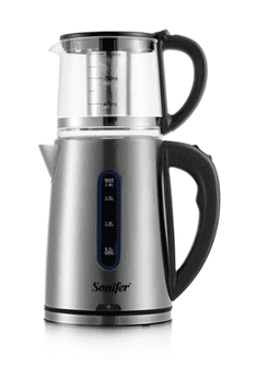 Электрический чайный набор Sonifer SF-2118 — это функциональная система, состоящая из основного электрического чайника и дополнительного заварочного чайника. Корпуса обоих устройств выполнены из высококачественной нержавеющей стали (demir), что гарантирует долговечность, устойчивость к коррозии и сохранение температуры. Набор предназначен для одновременного кипячения воды и поддержания заварки в горячем состоянии, что идеально подходит для семейного использования. Некоторые особенности устройства: Двойная конструкция позволяет удобно заваривать чай традиционным способом. Оба чайника изготовлены из пищевой нержавеющей стали, которая не влияет на вкус напитка. Скрытый нагревательный элемент мощностью 1500 Вт обеспечивает быстрое закипание воды в основном резервуаре. Функция автоматического поддержания температуры позволяет чаю оставаться горячим долгое время. Многоуровневая защита включает автоматическое отключение при закипании и защиту от перегрева. Эргономичные ручки из термостойкого материала предотвращают риск получения ожогов. Световой индикатор работы наглядно показывает состояние прибора. Вращающаяся на 360 градусов база обеспечивает удобство использования и экономию места на кухне.