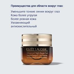 Усиленный восстанавливающий комплекс от Estee Lauder. Ночное средство для области вокруг глаз минимизирует отечность и предотвращает темные круги, увлажняет и разглаживает мелкие морщины, подтягивает контур век, устраняет раздражение, выводит токсины, а также защищает деликатную кожу от негативного воздействия «голубого излучения» экрана. Средство на основе восстанавливающего комплекса, концентрация которого в 10 раз выше по сравнению с остальными средствами, эффективно восстанавливает кожу в условиях недостатка сна, агрессивного воздействия ультрафиолетовых лучей и окружающей среды, а также негативного влияния синего света За всё это отвечают экстракты морских водорослей, арбуза, яблока, ромашки, сои, березы и другие полезные вещества.