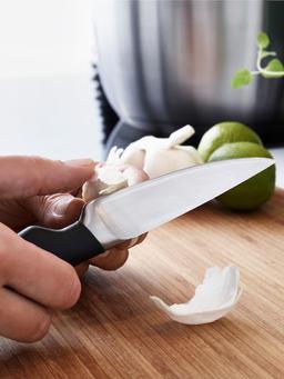 Этот нож длиной 9 см из нержавеющей стали чёрного цвета идеально подходит для мелких и точных нарезок. Прочный и эргономичный дизайн удобен на кухне.