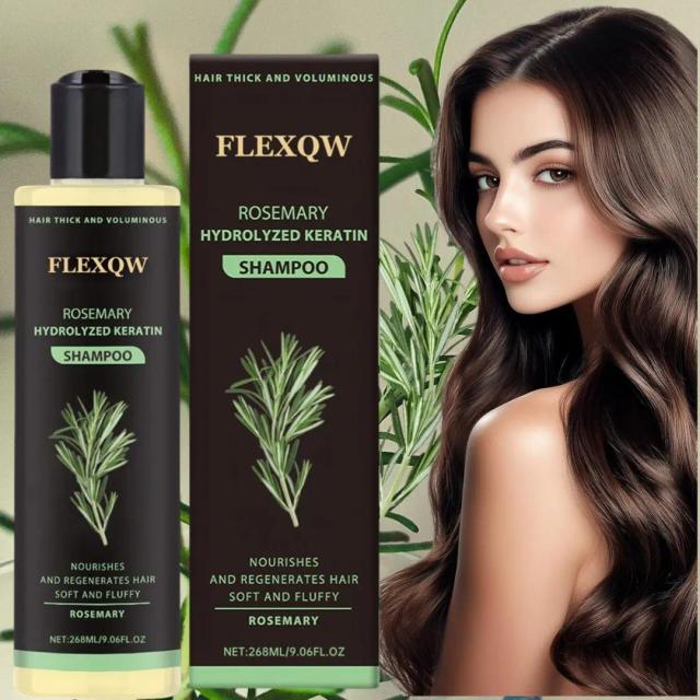 FLEXQW Шампунь с розмарином и кератином для роста волос и придания объема волосам, 268 г