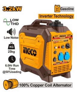 Генератор Ingco GEI35006 Тип двигателя: Инверторный, бензиновый, четырехтактный Номинальная мощность: 3.0 кВт Максимальная мощность: 3.2 кВт Рабочий объем: 210 см³ Напряжение: 220-240 В Особенности: Инверторный генератор средней мощности. Обеспечивает чистый ток и тихую работу.