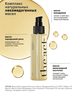 Шелковистое гидрофильное масло бережно растворяет стойкий макияж, SPF и загрязнения, не нарушая гидролипидный баланс кожи. Натуральные масла виноградной косточки, макадамии, лаванды и зародышей риса смягчают, увлажняют и освежают кожу, даря ощущение чистоты и комфорта без стянутости. При контакте с водой масло превращается в лёгкое молочко, легко смывается и не требует использования ватных дисков, обеспечивая экологичное очищение. — мягко растворяет макияж и SPF-средства — бережно очищает кожу от загрязнений и излишков себума — смягчает, увлажняет и освежает — больше подходит сухой коже, если у вас акнэ — лучше не экспериментировать! Объём: 170 мл