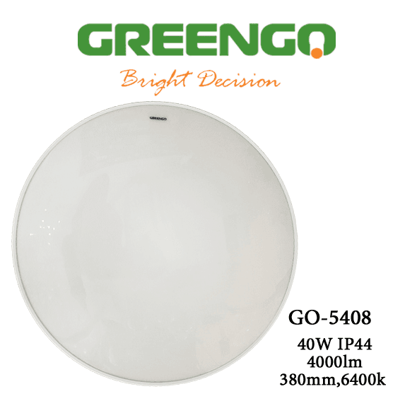 Greengo Спот GO-5408 белый - это мощный и стильный светодиодный светильник, который станет отличным дополнением к любому интерьеру. Благодаря своей высокой яркости, водонепроницаемости и универсальному дизайну, он идеально подходит для освещения различных помещений, как жилых, так и коммерческих. Характеристики: Мощность: 40 Вт Световой поток: 4000 лм Цветовая температура: Холодный белый (около 6400К) Степень защиты: IP44 (защита от брызг) Диаметр: 380 мм Монтаж: Потолочный