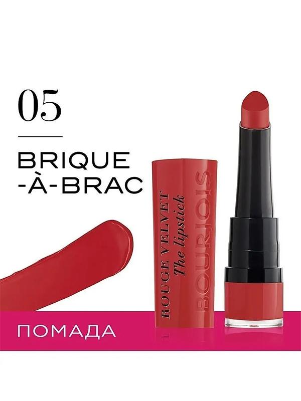 Характеристики Цвет: №05 BRIQUE-A-BRAC Объем: 2.4gr Описание Все лучшие свойства матовой помады теперь объединились в классической форме и премиальной упаковке Rouge Velvet the Lipstick! Потрясающе нежная текстура дарит ощущение комфорта и увлажняет губы. Всего одно движение и тайна потрясающей матовости твоих губ уже волнует окружающих. Эта загадка будет с тобой на протяжении 24 часов, пока не пробьет полночь! Способ применения Нанесите помаду на губы и равномерно распределите ее по поверхности обеих губ.