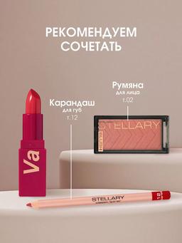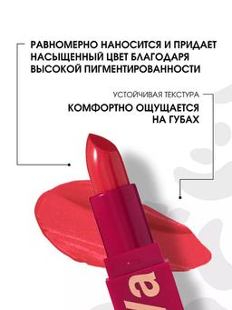 Характеристики Цвет: №07 VAMP Объем: 4gr Описание Помада с устойчивой текстурой My Lip Symbol комфортно ощущается на губах, равномерно наносится и придает насыщенный цвет благодаря высокой пигментированности. Касторовое масло в составе питает, смягчает и разглаживает кожу губ. Текстура имеет приятный аромат сочного винограда. Роскошный футляр алого цвета с матовым покрытием soft-touch и золотым леттерингом станет отражением вашего характера и статуса. Способ применения Для плотного покрытия и насыщенного оттенка наносите помаду из стика. Чтобы покрытие было легким и полупрозрачным, аккуратно наносите подушечками пальцев похлопывающими движениями.