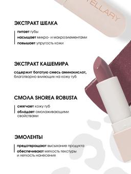 Характеристики Цвет: №09 TRENDSETTER Объем: 3.8gr Описание RICH NUDE — легендарная помада STELLARY с улучшенной формулой в элегантном и роскошном футляре-арке. Широкая палитра нюдовых оттенков для макияжа, в котором вы будете еще притягательнее и шикарнее. У RICH NUDE самая широкая ультрамодная палитра естественных оттенков — 22 тона для безупречных макияжей в стиле nude makeup. Помада с обновленной текстурой сохранила стойкость и высокую пигментацию, а полезные компоненты в ее составе обеспечивают уход за кожей губ. Экстракт шелка питает губы, насыщает микро- и макроэлементами, повышает упругость кожи. Экстракт кашемира содержит богатую смесь аминокислот, благотворно влияющих на кожу губ. Cмола Shorea Robusta смягчает кожу губ, обладает омолаживающими свойствами за счет высокого содержания ненасыщенных жирных кислот. Эмоленты обеспечивают мягкость текстуры и легкость нанесения, предотвращают высыхание продукта. Способ применения Наносите помаду от центра верхней губы по направлению к уголкам и на нижнюю губу от уголков по направлению к центру. Для более плотного покрытия наносите помаду из стика или используйте кисть для губ. Чтобы добиться невесомого цвета, наносите помаду подушечками пальцев вбивающими движениями.