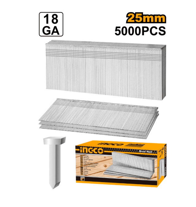 Гвозди для нейлера 18GA INGCO ANA18251 25 мм предназначены для крепления деревянных и древесно-волокнистых панелей/сборка мебельных каркасов/обивка. Тип инструмента: Гвозди по дереву 18GA Линейка: STANDART Модель: INGCO ANA18251 Длина гвоздей: 25 мм Диаметр гвоздей: 1.25х1 Шляпка гвоздя: 1.25х2.0 мм