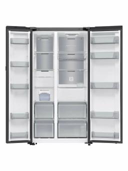 Двухкамерный холодильник Samsung Side-by-Side с автоматически открывающимися дверьми RS80F65M1BWR — это многофункциональное и элегантное решение для вашего дома! Холодильник объемом 646 литров оснащен сенсорными датчиками на дверцах, легкое касание к ним приводит механизм открытия в действие и обеспечивает быстрый доступ к продуктам. Многофункциональная полка Rack & Shelf помогает рационально использовать пространство холодильника. Благодаря ребристой поверхности и увеличенному размеру она подходит для хранения бутылок разных габаритов, а также идеально размещает коробки, пиццу и другие продукты нестандартной формы. Режим AI Energy в приложении SmartThings Energy контролирует расход за электроэнергию, снижая электропотребление на 10%. Внутренний помощник оповестит, если показатели превысят предыдущий месяц, и подстроит работу холодильника под частоту использования и окружающую среду. Инверторный компрессор AI обеспечивает бытовой технике тихую, энергоэффективную и долговечную работу. С его помощью степень охлаждения определяется автоматически в зависимости от загрузки холодильной и морозильной камер. Многопоточная система охлаждения All-Around Cooling равномерно распределяет холодный воздух через вентиляционные отверстия внутри холодильника, поддерживая оптимальную температуру и сохраняя продукты свежими. Функция Power Cool помогает быстрее охладить еду и напитки, а Power Freeze предназначена для быстрого изготовления льда и глубокой заморозки. Металлическая пластина Metal Cooling позволяет дольше сохранять холодный воздух и свежесть продуктов, снижая потери холода при открытии дверцы. Холодильник Самсунг можно подключить к приложениям SmartThings Home Care и SmartThings Food с помощью Wi-Fi. С приложением SmartThings Home Care проще отслеживать состояние холодильника: система сама сообщит, если необходимо заменить детали, или предложит решение выявленных проблем. Умный помощник в SmartThings Food помогает составить список продуктов, которые хранятся в холодильнике, следить за их сроками годности и предлагает разнообразные рецепты, опираясь на ваши предпочтения и имеющиеся ингредиенты. С двухкамерным холодильником Samsung вы получите не только яркий акцент на кухне, но и функционального помощника!