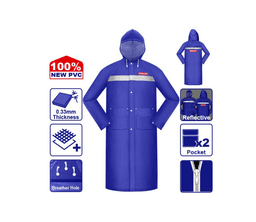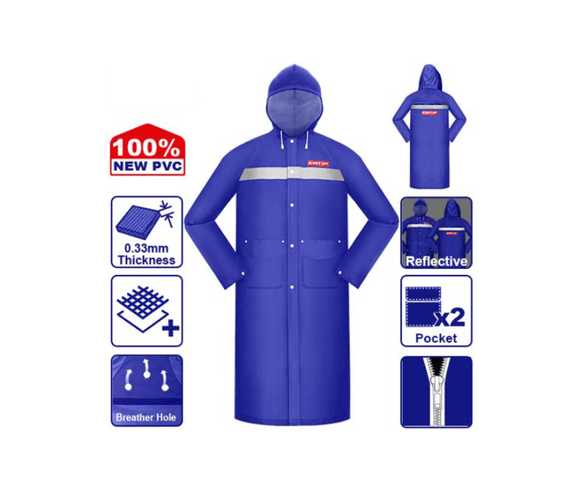 Материал: ПВХ + полиэстер 100% новый ПВХ Водонепроницаемый, дышащий Два нижних кармана с клапанами Со светоотражающей полосой сзади Упаковано в полиэтиленовый пакет