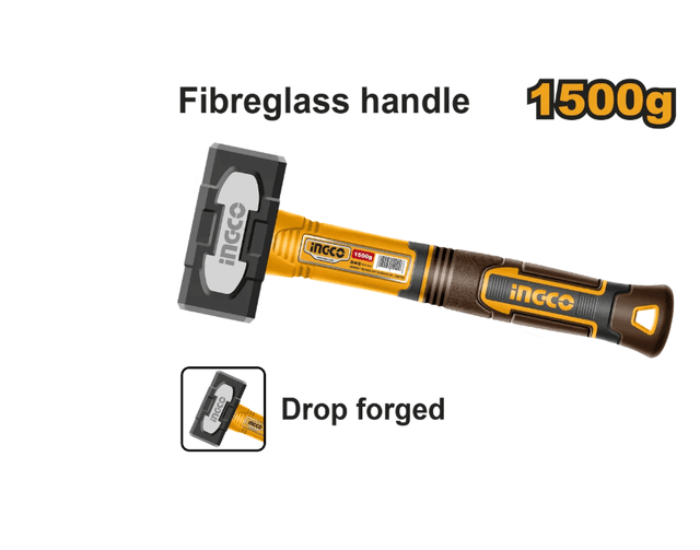 Вес: 1500 г. Инновационная кованая головка молотка. Термическая обработка, углеродистая сталь 45#. Прочная трехцветная рукоятка из стекловолокна для удобного захвата. Упаковано этикеткой.