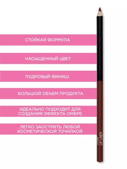 Характеристики Цвет: BRANDY WINE Объем: 1.4gr Описание Карандаш с насыщенной кремовой текстурой легко наносится скользящим движением и отлично держится на губах. С ним ваша помада точно останется на месте долгое время. А для более длительного и ровного эффекта воспользуйтесь советом визажистов: нанесите карандаш на всю поверхность губ и наслаждайтесь стойким цветом! Способ применения Нанесите карандаш по контуру губ, растушуйте. Для большей стойкости помады и интенсивности цвета наносите карандаш на всю поверхность губ.