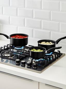 Этот набор состоит из 3 чёрных ковшиков объёмом 1 л, 1.5 л и 2 л. Идеально подходит для повседневного использования — приготовления соусов, разогрева еды или небольших блюд. Лёгкие, удобные в использовании и быстро нагреваются.