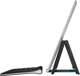 Logitech Tablet Keyboard — это элегантная и компактная беспроводная Bluetooth-клавиатура, специально разработанная для пользователей iPad. Она позволяет превратить ваш планшет в полноценное рабочее место в любом месте. Тип подключения: Беспроводная (Bluetooth). Быстрое и стабильное сопряжение с iPad на расстоянии до 10 метров. Уникальный чехол-подставка: В комплекте идет жесткий защитный футляр. При использовании клавиатуры он превращается в регулируемую подставку, которая удерживает iPad в горизонтальном или вертикальном положении Клавиши управления iPad: Клавиатура оснащена специальными кнопками для быстрого доступа к функциям «Домой», поиску, управлению яркостью и мультимедиа (громкость, пауза/воспроизведение). Полноразмерная раскладка: Несмотря на компактность, клавиши имеют стандартный размер, что обеспечивает комфорт и высокую скорость печати. Энергосбережение: Работает от 4 батареек типа AAA. Предусмотрен выключатель питания для экономии заряда, когда вы не пользуетесь устройством. Раскладка: ENG (Английская).