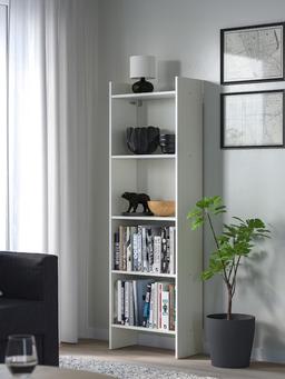 Книжный шкаф IKEA BAGGEBO: Материал Сталь, Плита. Открытый стеллаж с индустриальным дизайном, подходит для книг и декора. Особенность: Прочный стальной каркас и вместительные полки. В нижней части есть закрытое отделение для хранения мелочей. Размеры Ш: 50 см, Г: 25 см, В: 160 см. Цвет Белый.