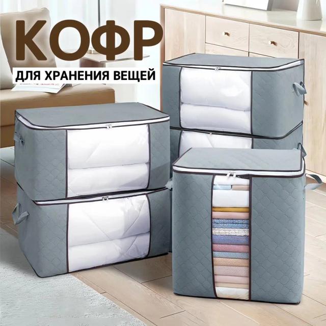 Практичное решение для организации порядка в шкафу, под кроватью или в гардеробной. Кофр надежно защищает одежду, постельное белье и аксессуары от пыли, влаги и посторонних запахов, обеспечивая эстетичный вид системы хранения. Особенности: Дышащий материал: Изготовлен из качественного нетканого полотна, которое обеспечивает вентиляцию и предотвращает появление затхлого запаха. Прозрачное окно: Позволяет видеть содержимое, не открывая кофр, что экономит время на поиск нужных вещей. Прочные ручки: Усиленные боковые ручки удобны для переноски и извлечения кофра с верхних полок. Надежная молния: Двусторонняя застежка обеспечивает легкий доступ к вещам и герметичность хранения. Складная конструкция: В сложенном виде практически не занимает места, когда не используется.