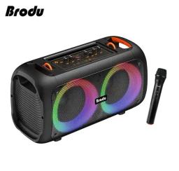 Brodu BTS-1709 Bluetooth караоке-колонка с перезаряжаемым аккумулятором для вечеринок Наслаждайтесь мощным звуком и веселыми песнями вместе с караоке-колонкой Brodu BTS-1709 с Bluetooth. В комплект входят беспроводной микрофон и портативный сабвуфер для динамичного звучания. Караоке-колонка Brodu с перезаряжаемым USB-аккумулятором. Наслаждайтесь мощным звуком благодаря динамичному портативному сабвуферу и беспроводному микрофону для незабываемой вечеринки! Функции: Модель: BTS 1709 Размер динамика: 6,5 дюймов Два сабвуфера (по 6,5 дюймов каждый) Перезаряжаемая батарея Огонь Беспроводной микрофон Удаленный Функция FM-радио Настоящая беспроводная стереосистема Вспомогательный Guitar Plug In Большой звук, хорошие басы Совместимость с USB и слотом для SD-карт. В комплекте бесплатный беспроводной микрофон и кабель. Технические характеристики Торговая марка: BRODU Беспроводная версия: V5.3+EDR Емкость аккумулятора: 1800 мАч Размер динамика: низкочастотный динамик 6,5 дюймов. Аудиокроссовер, полнодиапазонный Выходная мощность: 60 Вт (30 Вт x 2) Размеры изделия: 26х22х47 см Частотная характеристика: 100 Гц–20 кГц Соотношение сигнал/шум: >=85 дБ Диапазон сканирования FM: 87,5–108,0 МГц Радиус действия беспроводной связи: 10 метров Максимальный объем памяти USB/SD: 32 ГБ Зарядка через USB: DC 5V Поддержка FM/USB/TF/BT/TWS/AUX/микрофона