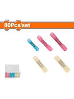 80 шт. термоусадочных трубок Материал: медь + ПЭ 34 шт. 22-16 Ga красная 31 шт. 16-14 Ga синяя 15 шт. 12-10 Ga желтая Упаковано в пластиковую коробку
