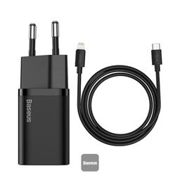 Комплекты Baseus Super Si Quick Charger 1C 20W с кабелем Baseus Simple Wisdom Type-C для iPhone, 1 м,