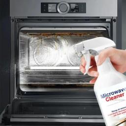 Средство представляет собой спрей для чистки внутренних поверхностей микроволновых печей от жира, грязи и остатков пищи. На упаковке указано, что оно обеспечивает сильное удаление масла ("Strong oil removal") и автоматически разлагает пятна, оставляя свежий запах ("Automatically decompose stains with fresh smelling"). Средство безопасно для кожи и не повреждает технику ("Skin safe", "No damage to appliances"). Емкость флакона составляет 500 мл. Способ применения Хотя инструкции могут незначительно отличаться в зависимости от конкретного производителя, общий принцип использования подобных спреев следующий: Отключите микроволновую печь от сети электропитания. Распылите средство на внутреннюю поверхность камеры, которую необходимо очистить. Оставьте средство подействовать на несколько секунд или минут, чтобы оно размягчило грязь и жир. Протрите поверхность влажной губкой или кухонным полотенцем. В случае стойких загрязнений может потребоваться использование жесткой стороны губки. После очистки рекомендуется еще раз протереть поверхность чистой влажной тканью, чтобы удалить остатки средства. Обратите внимание: избегайте попадания чистящего средства на электрические компоненты прибора