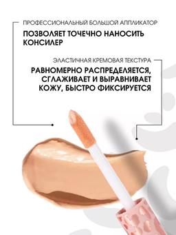 Характеристики Цвет: №02 LIGHT PEACH / СВЕТЛО-ПЕРСИКОВЫЙ Объем: 5ml Описание Создает стойкий матовый финиш, не забивается в морщинки и не подчеркивает шелушения. Равномерно распределяется, сглаживая и выравнивая кожу, быстро фиксируется. Эластичная кремовая текстура, укрывистая и плотная, позволяет полностью скрыть темные круги под глазами, гиперпигментацию, следы от акне и другие изъяны на лице. Способ применения Нанесите нужное количество консилера на проблемную зону при помощи аппликатора и сразу растушуйте кремовую текстуру. Выбирайте консилер на тон светлее вашего тонального средства либо в тон с ним.
