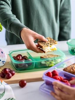 Контейнер для сэндвичей PRUTA — это широкая и плоская емкость, специально предназначенная для транспортировки хлебобулочных изделий и других продуктов, требующих защиты от смятия. Зеленая крышка плотно закрывается. Контейнер подходит для замораживания, разогрева в микроволновой печи и мытья в посудомоечной машине. Области Применения: Для ланчей, транспортировки сэндвичей, выпечки и других плоских продуктов в школу, на работу или пикник. Технические Характеристики Цвет: Крышка Зеленый Материал: Полипропиленовый пластик. Размеры: Длина: 22 см, Ширина: 14 см, Высота: 5 см. Особенности: Специальная форма для сэндвичей, подходит для замораживания и использования в СВЧ.