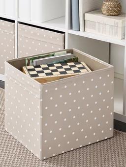 Коробка IKEA DRÖNA бежевая/в горошек, 33x38x33 см