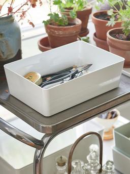 Для организации и хранения мелких предметов, канцелярии, косметики или электронных аксессуаров. Удобно использовать в шкафах и на стеллажах. Материал: Пластик Размер: 18x26x8 см