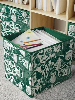 Коробка IKEA SKOGSDUVA зеленая/белая, 33x38x33 см""SKOGSDUVA Box, green/white, 33x38x33 cm