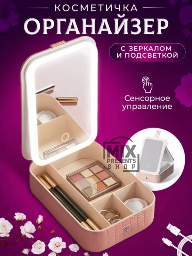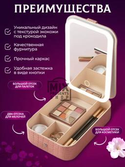 Косметичка органайзер с зеркалом и подсветкой LED, дорожная Косметичка-органайзер с зеркалом и подсветкой - это стильный и функциональный аксессуар, который станет незаменимым помощником в организации косметики и аксессуаров. Выполнена из высококачественной экокожи под крокодила, косметичка обладает уникальным и эстетичным видом. Вместительная конструкция косметички позволяет разместить все необходимые средства для макияжа и ухода, а также аксессуары, которые всегда должны быть под рукой. Одной из главных особенностей косметички является встроенное зеркало с подсветкой. Зеркало обеспечивает отличное освещение, позволяя вам делать макияж в любых условиях будь то яркий солнечный день или вечерняя встреча. Косметичка оснащена регулировкой яркости подсветки, что позволяет настроить освещение в соответствии с вашими предпочтениями. Компактные размеры (ширина 11,5 см, высота 6 см) и вес всего 0,4 кг делают косметичку удобной для переноски и хранения. Питание зеркала и подсветки осуществляется от USB-порта, что позволяет использовать его в любом месте, где есть доступ к источнику питания. Розовый цвет косметички делает ее ярким и стильным аксессуаром, который станет отличным дополнением к любому образу. Цвет: розовый, салатовый.